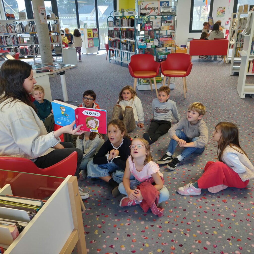 Pendant que les uns pouvaient lire ou simplement feuilleter les livres de leur choix, d’autres écoutaient les histoires sélectionnées par Marie. Les enfants ont découvert des “livres jeux” sous la forme d’un “ni oui ni non” ou de devinettes.